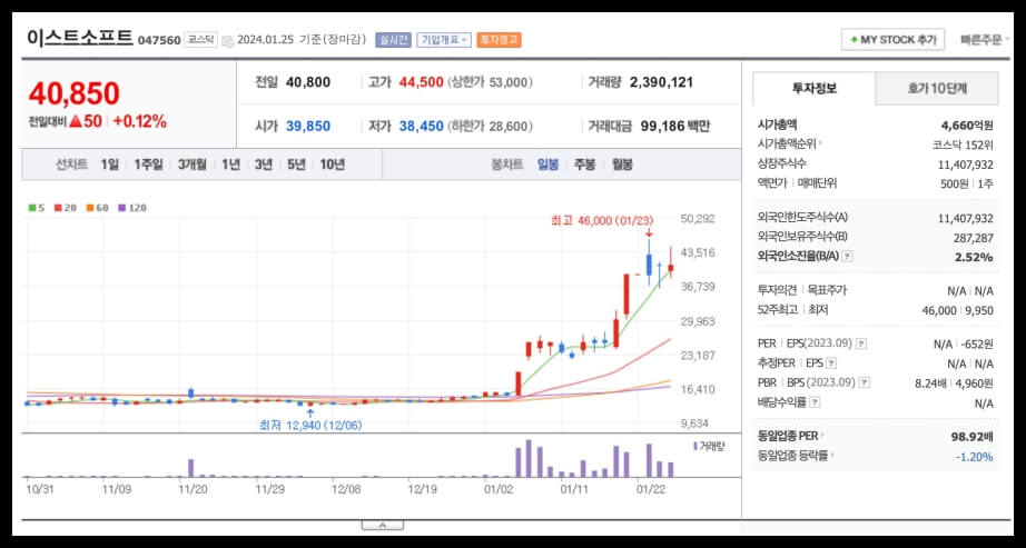 또한 이스트소프트는 인공지능(AI) 분야에도 주목하고 있으며, 최근에는 AI 휴먼 서비스에 대한 기대감으로 주가가 상승하는 모습을 보였습니다. AI 휴먼 서비스는 인공지능 기술을 활용하여 사람처럼 대화하고 상호작용하는 서비스로, 이스트소프트는 이 분야에서도 혁신을 이어가고 있습니다.