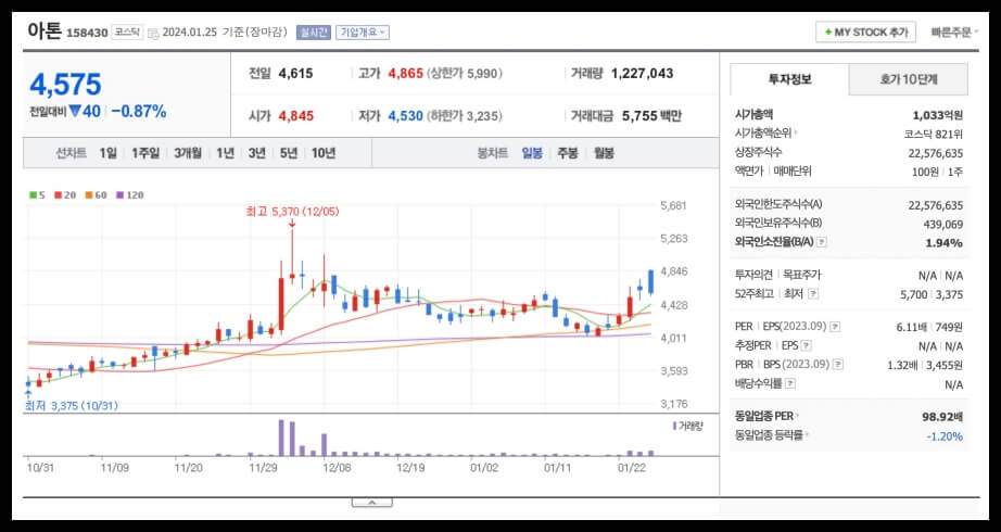 아톤은 1999년 설립되었으며, 금융기관을 중심으로 핀테크 보안 솔루션 및 인증서비스를 제공하는 핀테크 보안/인증 솔루션 기업입니다. 아톤은 최근 몇 년간 안정적인 성장을 보여주고 있으며, 특히 2023년 상반기에는 창립 이래 최대의 반기 실적을 달성했다고 알려져 있습니다. 이는 전년 동기 약 48.8% 성장한 매출액 297억 원과 영업이익 48억 원을 기록한 것으로, 상당한 성과를 보여줍니다.