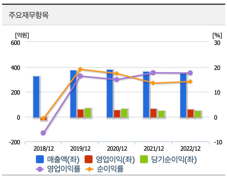 -2022년 매출액: 351억 (yoy -3.6%)
