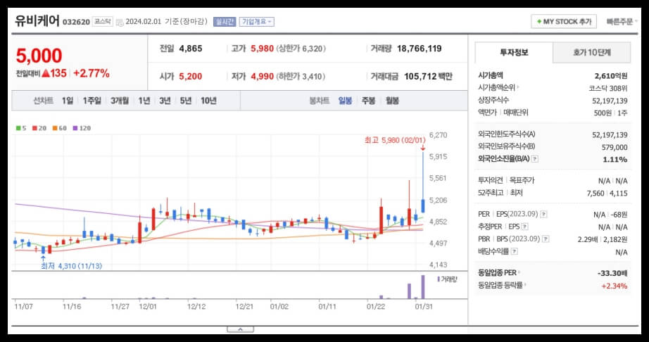 4. 유비케어 (코스닥, 032620)