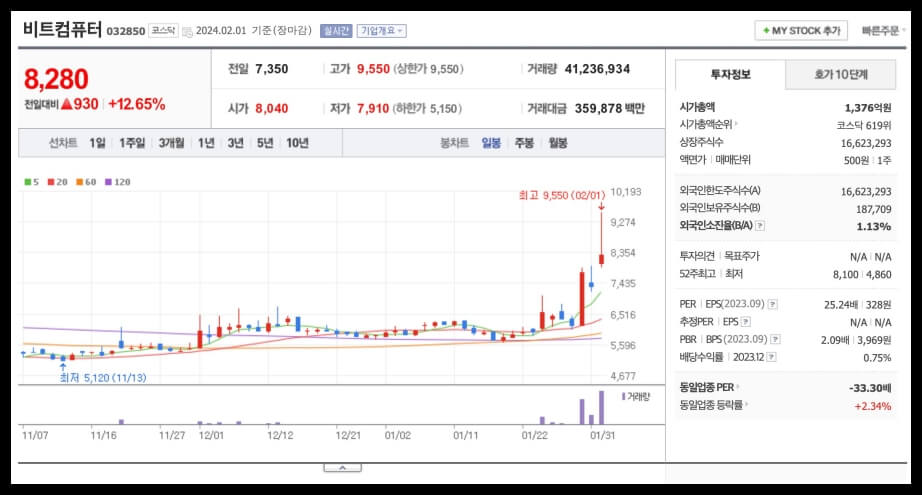 1. 비트컴퓨터 (코스닥, 032850)