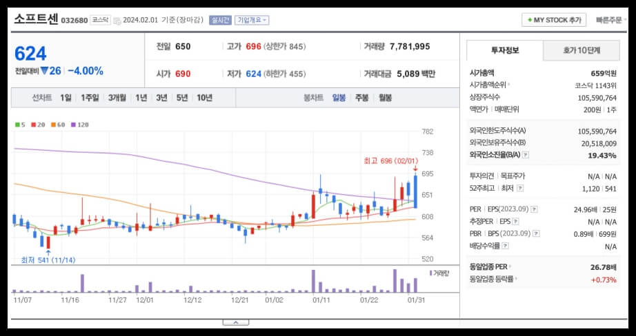 5. 소프트센 (코스닥, 032680)