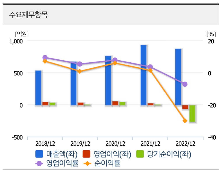 -2022년 매출액: 734억 (yoy -20.7%)