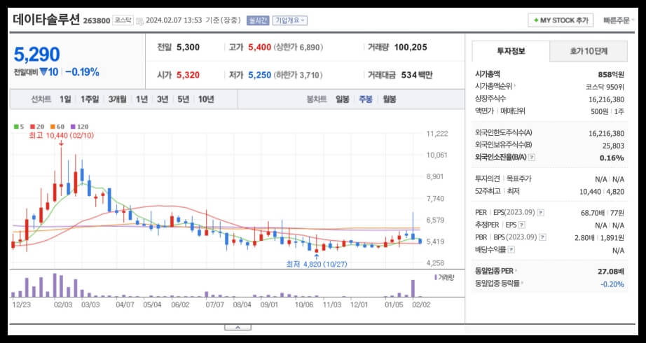 ▶ 데이타솔루션을 대장주로 선정한 이유