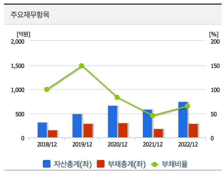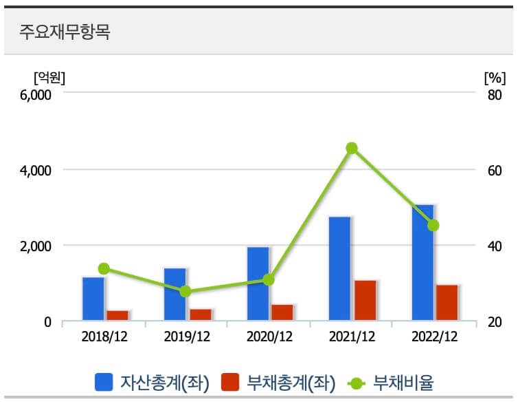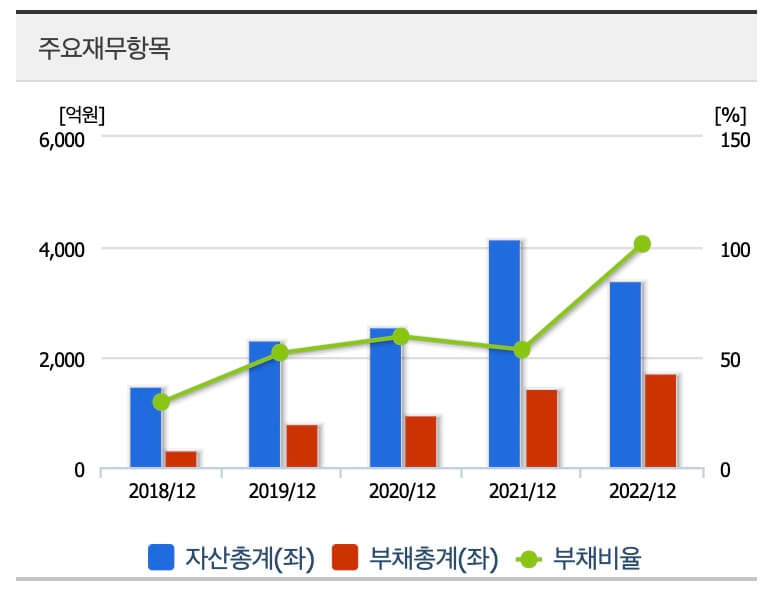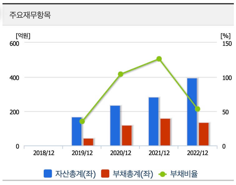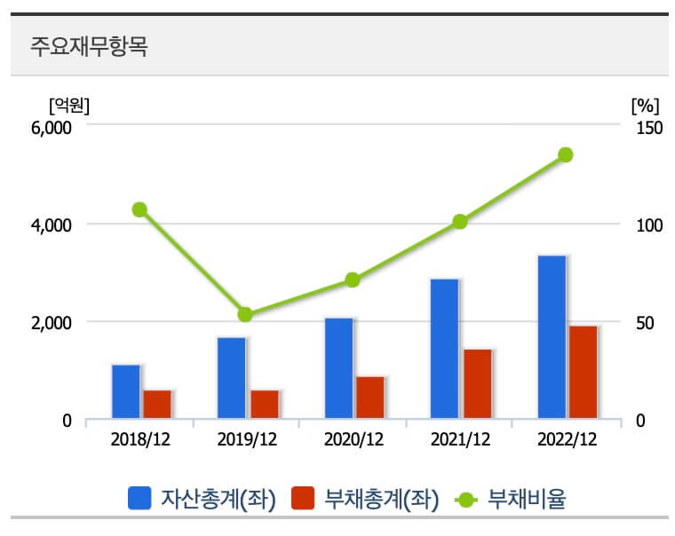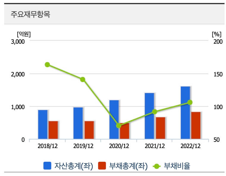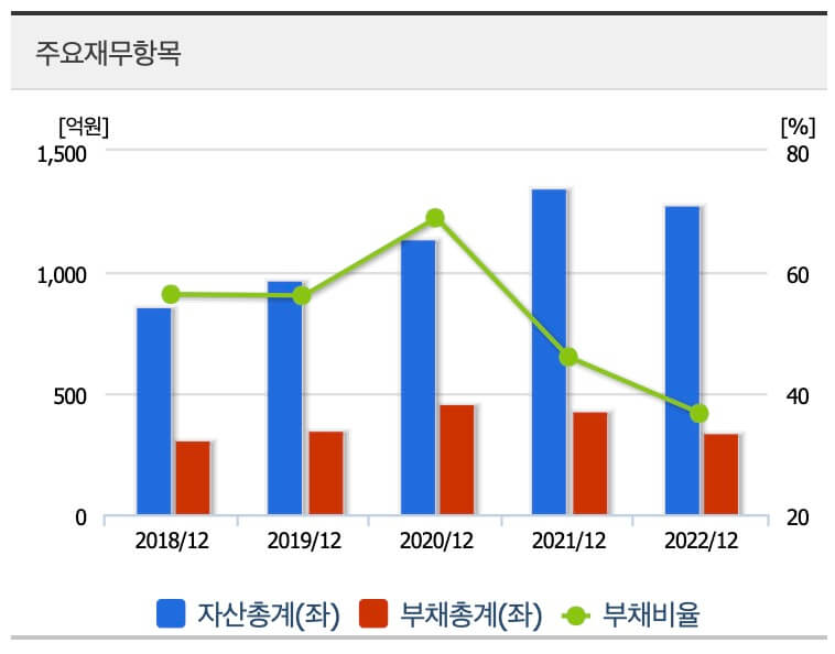 - 재무상태: 23년 3분기 기준, 매출액은 전년 동기 대비 7.6% 증가한 138억 원을 기록했습니다. 영업이익은 적자로 전환되었으며, 당기순이익 역시 적자를 지속하고 있습니다. 자산 총계는 1,209억 원으로 증가했고, 부채 총계는 716억 원입니다. 현재 재무상태는 좋지 않은 것으로 분석됩니다.