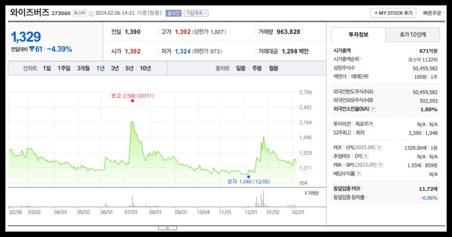 -2023년 매출액: 2,759억 (yoy -1.2%)