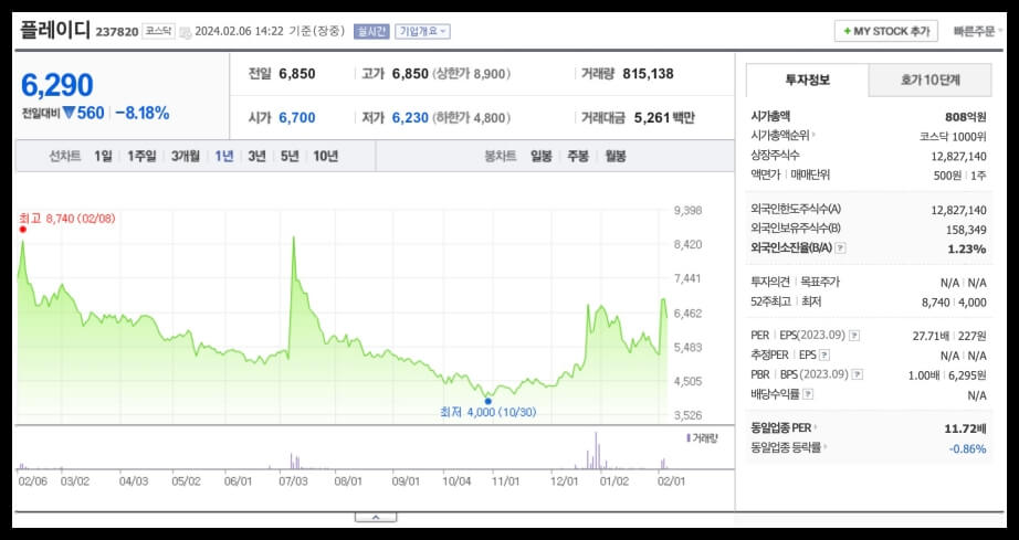 - 주요 사업: 플레이디의 주력 사업은 디지털 마케팅 및 광고 대행업입니다. 특히, 틱톡샵의 한국 진출로 인한 이커머스 시장의 변화에 따라 디지털 광고 분야에서의 성장 모멘텀이 기대되고 있습니다.
