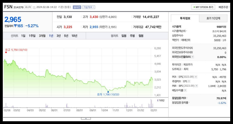 FSN은 틱톡샵의 미국 정식 서비스 개시와 관련하여 강세를 보인 기업입니다. FSN의 자회사인 비헤이브글로벌은 2019년부터 틱톡과 광고 대행 계약을 체결하고, 중국 및 글로벌 시장에서 국내 브랜드의 플랫폼 입점, 운영, 물류 및 홍보마케팅을 지원하고 있습니다.