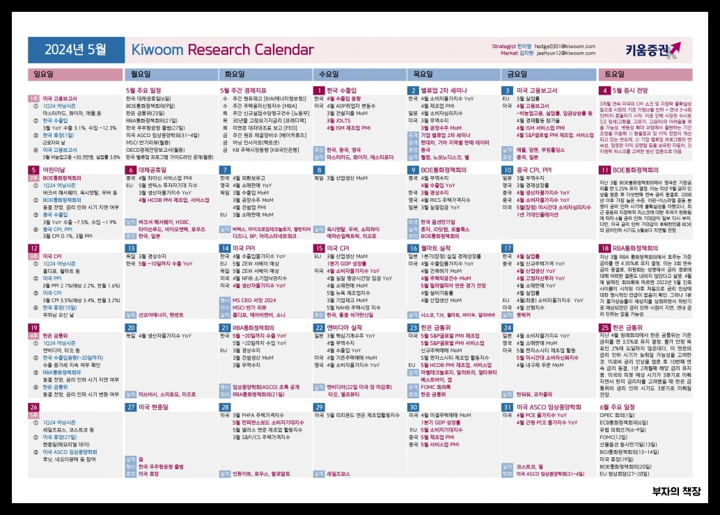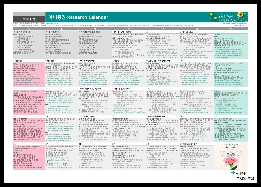 2024년 5월 하나증권 증시 캘린더 다운로드