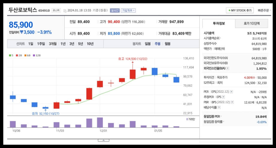 - 증시에서의 강세: 상장 당시, 두산로보틱스는 다른 로봇 관련 주식들에 비해 높은 주가를 기록하며 새로운 대장주로 부상했습니다. 이는 기관투자자와 시장에서의 기대감을 반영하고 있습니다.