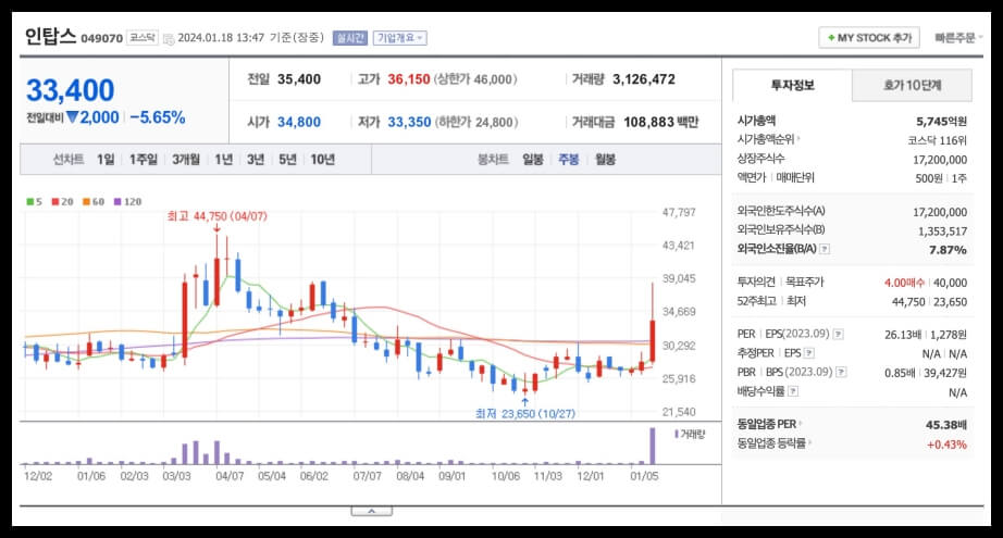 - 주가 상승: 인탑스의 주가는 최근 상한가를 기록했으며, 코스닥 시장 내에서 거래대금과 거래량에서 높은 순위를 차지했습니다. 삼성전자가 로봇 산업 투자에 본격적인 의지를 보인만큼 긴밀한 협력관계인 인탑스도 좋은 주가 흐름이 기대됩니다.